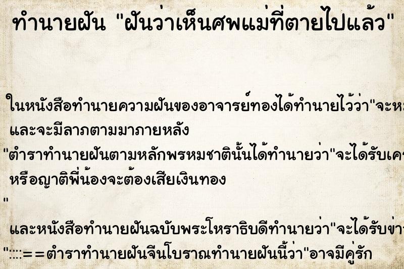 เว็บไซต์ทำนายฝัน ยอดนิยมอันดับ1 ตำราไทยครบครันที่สุดในประเทศไทย รวมคำทำนายฝันจากตำราไทยโบราณ – จีน – พม่า พร้อมระบบค้นหาอัตโนมัติรองรับมือถือ ใช้งานง่าย เหมาะสำหรับผู้ที่อยากรู้ “ความหมายของความฝัน” และ “เลขเด็ดแม่นๆ”