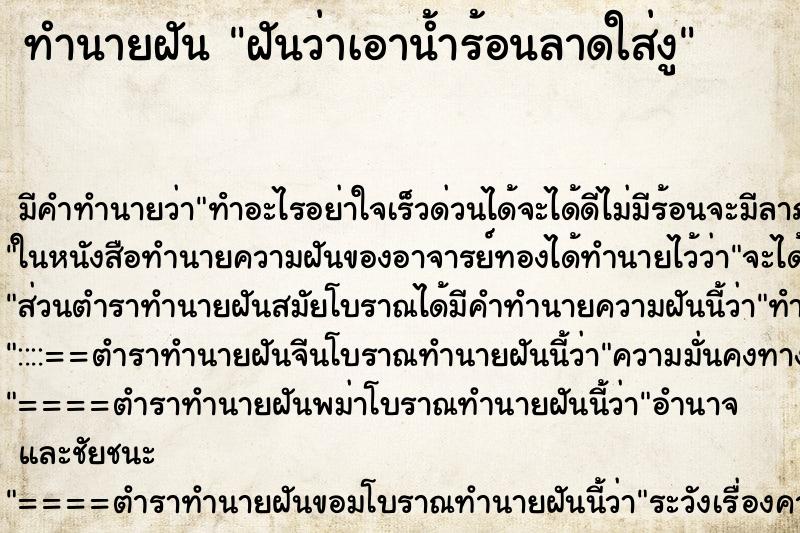 เว็บไซต์ทำนายฝัน ยอดนิยมอันดับ1 ตำราไทยครบครันที่สุดในประเทศไทย รวมคำทำนายฝันจากตำราไทยโบราณ – จีน – พม่า พร้อมระบบค้นหาอัตโนมัติรองรับมือถือ ใช้งานง่าย เหมาะสำหรับผู้ที่อยากรู้ “ความหมายของความฝัน” และ “เลขเด็ดแม่นๆ”