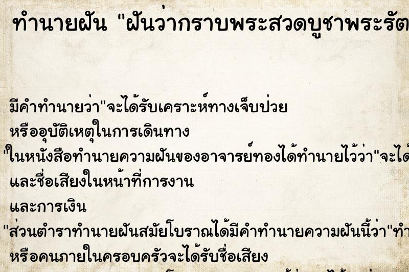 :: ดวงจากความฝัน ฝันว่ามีคนมาบอกว่าจะบวช