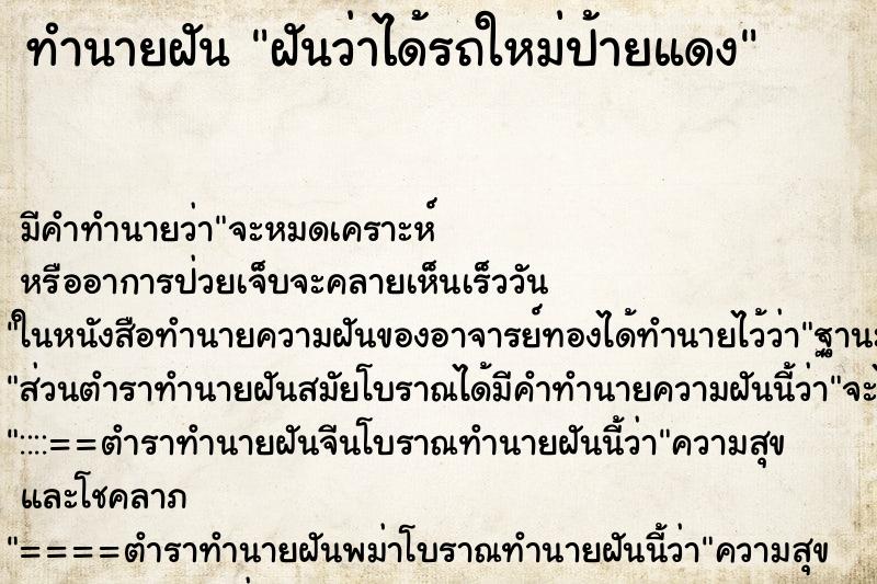 "ฝันว่ารถหายตอนกลางค่อนแจ้งที่บ้านเคยอยู่เดิมแต่ในฝันเหมือนอยู่ที่นั้น ฝันเห็น ฝันถึงรถหายตอนกลางค่อนแจ้งที่บ้านเคยอยู่เดิมแต่ในฝันเหมือนอยู่ที่นั้น" 🔎 ความฝันนี้ ทำนายว่า"จะได้รับเคราะห์น้อยๆจากอุบัติเหตุหรือการเสียเงินเสียทองโดยไร้ประโยชน์หรือมิฉะนั้นจะถูกขโมยทรัพย์สิน " (เลขนำโชค : 3,0,6) 💫 ในหนังสือทำนายฝันโบราณได้ทำนายว่า "จะได้พบเพศตรงข้ามที่พึงพอใจถ้าเป็นหญิงมีครรภ์จะได้บุตรหญิงน่ารักชายจะได้ลาภเป็นความสุขทางใจหรือลาภข้าวของมีค่า " (เลขนำโชค : 9,7,6,0) 💫 และตำราทำนายฝัน108พรหมชาติ ทำนายว่า "จะหมดเคราะห์หรือเจ็บป่วยจะหายจะได้เลื่อนตำแหน่งหน้าที่การงาน " (เลขนำโชค : 7,6,3,0)
