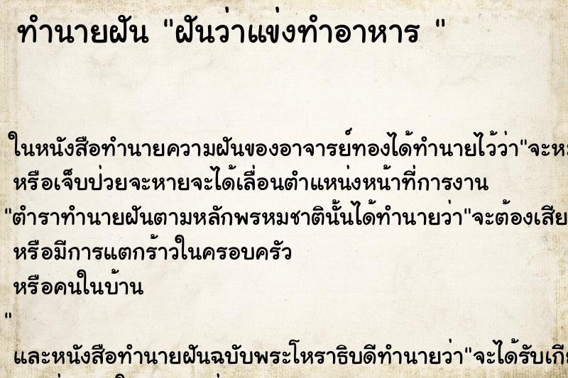 คำทำนายฝันนั้นมีหลายแบบ เพราะเรื่องของการพยากรณ์ฝันเป็นศาสตร์ความเชื่อที่แตกต่างกันตามตำรา ไม่มีหนังสือหรือตำราพยากรณ์ฝันใดจะมีความแม่นยำได้ 100% ไม่มีใครสามารถชี้ชัดว่าอันไหนถูกผิด โปรดใช้วิจารณญานตามความชอบหรือความเชื่อของตัวท่านเอง