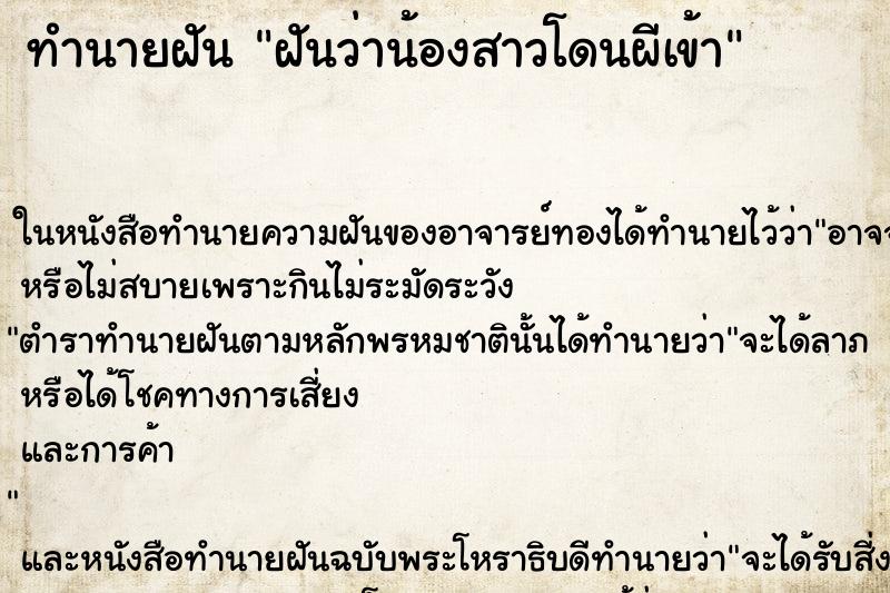 คำทำนายฝันนั้นมีหลายแบบ เพราะเรื่องของการพยากรณ์ฝันเป็นศาสตร์ความเชื่อที่แตกต่างกันตามตำรา ไม่มีหนังสือหรือตำราพยากรณ์ฝันใดจะมีความแม่นยำได้ 100% ไม่มีใครสามารถชี้ชัดว่าอันไหนถูกผิด โปรดใช้วิจารณญานตามความชอบหรือความเชื่อของตัวท่านเอง