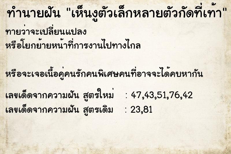 --- ความฝัน ฆ่างูตายด้วยมือเปล่า เลขเด็ดเลขอะไร? : 56 14 89 38 74 03