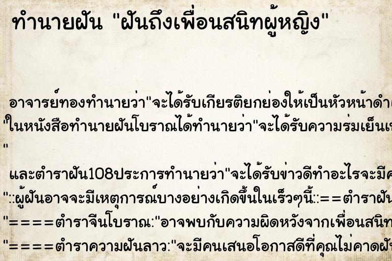 เว็บไซต์ทำนายฝัน ยอดนิยมอันดับ1 ตำราไทยครบครันที่สุดในประเทศไทย รวมคำทำนายฝันจากตำราไทยโบราณ – จีน – พม่า พร้อมระบบค้นหาอัตโนมัติรองรับมือถือ ใช้งานง่าย เหมาะสำหรับผู้ที่อยากรู้ “ความหมายของความฝัน” และ “เลขเด็ดแม่นๆ”