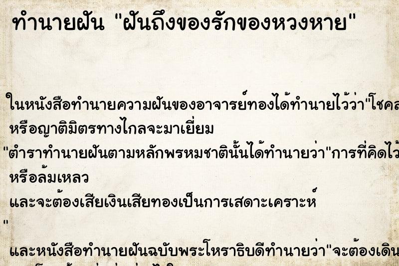 🌟 ทำนายฝันเกาหลีโบราณ : "ระวังของหายหรือทำสิ่งสำคัญสูญหาย