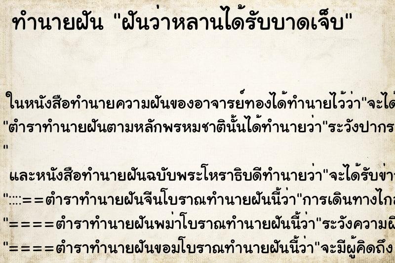 :: ถ้าฝัน แผลที่ขาเปียกน้ำ อาจจะมีเหตุการณ์บางอย่างเกิดขึ้นในเร็วๆนี้ ::