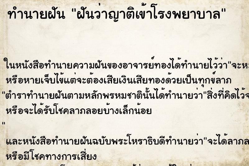 คำทำนายฝันนั้นมีหลายแบบ เพราะเรื่องของการพยากรณ์ฝันเป็นศาสตร์ความเชื่อที่แตกต่างกันตามตำรา ไม่มีหนังสือหรือตำราพยากรณ์ฝันใดจะมีความแม่นยำได้ 100% ไม่มีใครสามารถชี้ชัดว่าอันไหนถูกผิด โปรดใช้วิจารณญานตามความชอบหรือความเชื่อของตัวท่านเอง