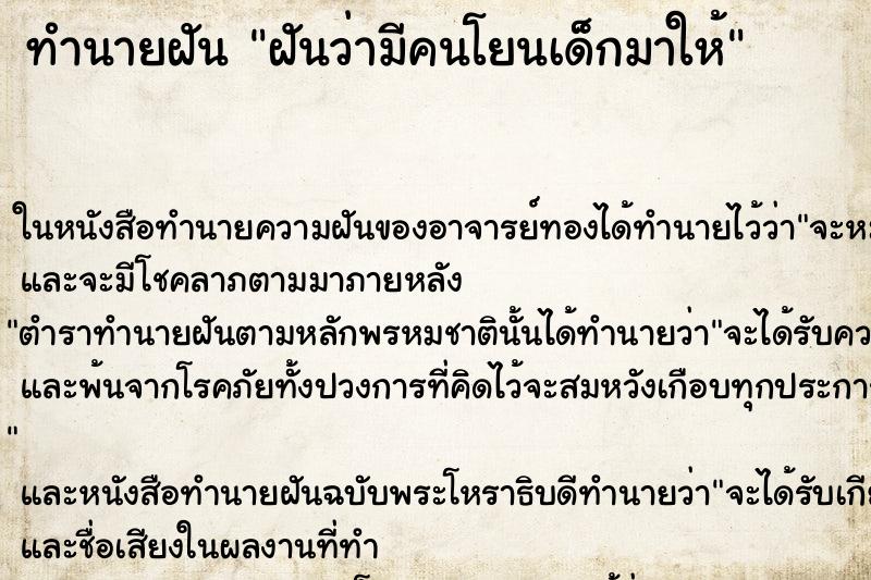 🌟 ทำนายฝันไทยโบราณ : "จะมีคนเข้ามาช่วยเหลือในเวลาที่ต้องการ