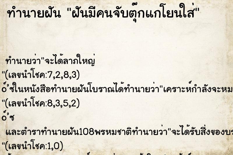 🌟 ทำนายฝันจีนโบราณ : "จะมีผู้ใหญ่ให้การสนับสนุนเรื่องงาน