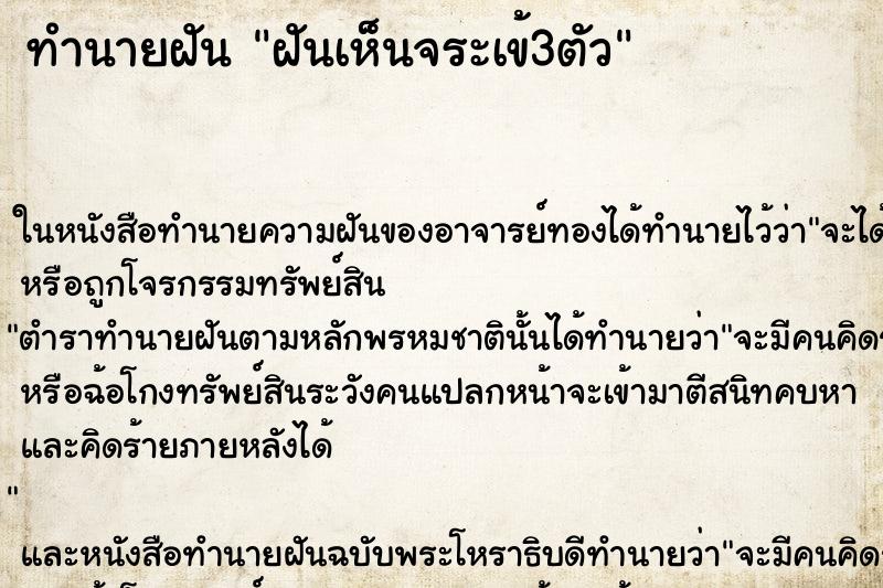 คำทำนายฝันนั้นมีหลายแบบ เพราะเรื่องของการพยากรณ์ฝันเป็นศาสตร์ความเชื่อที่แตกต่างกันตามตำรา ไม่มีหนังสือหรือตำราพยากรณ์ฝันใดจะมีความแม่นยำได้ 100% ไม่มีใครสามารถชี้ชัดว่าอันไหนถูกผิด โปรดใช้วิจารณญานตามความชอบหรือความเชื่อของตัวท่านเอง