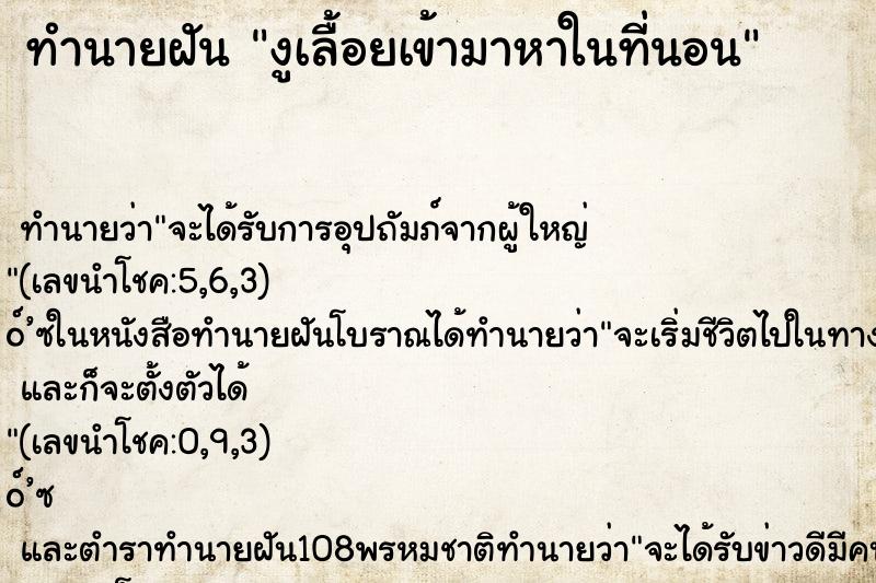 🔸ฝันว่างูกัดขา 🔸ฝันว่าภรรยาเสียชีวิตเลขเด็ด 🔸ฝันเห็นงูเหลือมตัวใหญ่ 🔸ฝันเห็นงู7หัว 🔸ฝันถึงงูไม่มีหัว 🔸ทํานายฝันปู