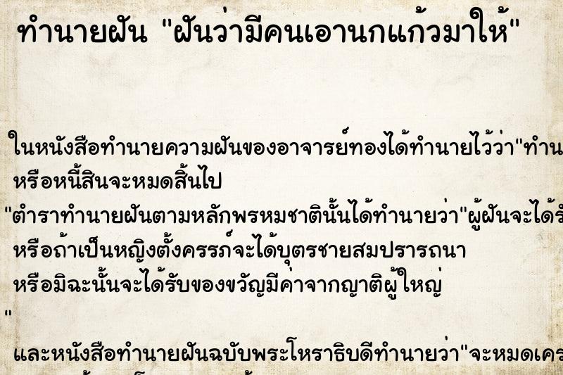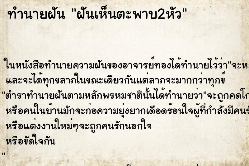 คำทำนายฝันนั้นมีหลายแบบ เพราะเรื่องของการพยากรณ์ฝันเป็นศาสตร์ความเชื่อที่แตกต่างกันตามตำรา ไม่มีหนังสือหรือตำราพยากรณ์ฝันใดจะมีความแม่นยำได้ 100% ไม่มีใครสามารถชี้ชัดว่าอันไหนถูกผิด โปรดใช้วิจารณญานตามความชอบหรือความเชื่อของตัวท่านเอง