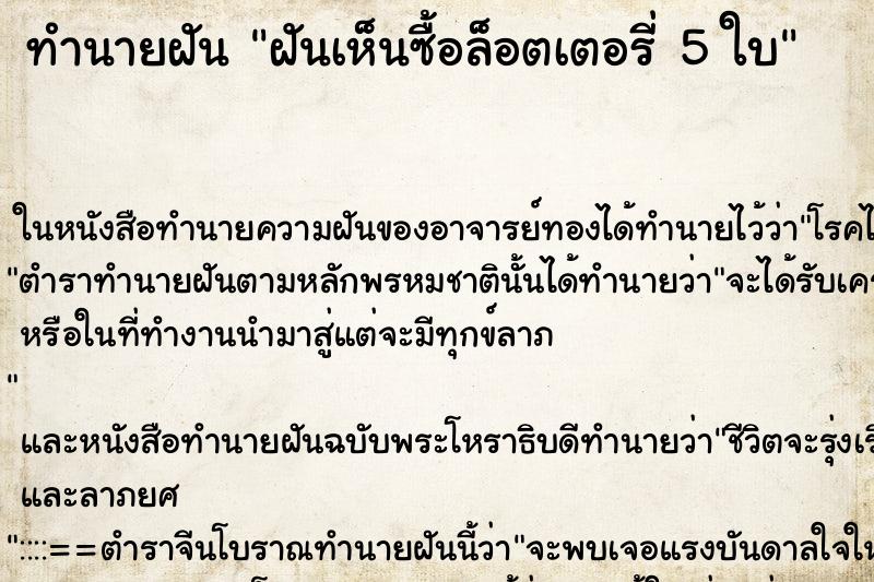 เว็บไซต์ทำนายฝัน ยอดนิยมอันดับ1 ตำราไทยครบครันที่สุดในประเทศไทย รวมคำทำนายฝันจากตำราไทยโบราณ – จีน – พม่า พร้อมระบบค้นหาอัตโนมัติรองรับมือถือ ใช้งานง่าย เหมาะสำหรับผู้ที่อยากรู้ “ความหมายของความฝัน” และ “เลขเด็ดแม่นๆ”