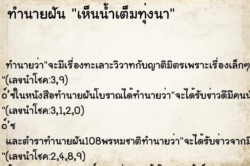 :: ดวงจากความฝัน เห็นน้ำเต็มทุ่งนา