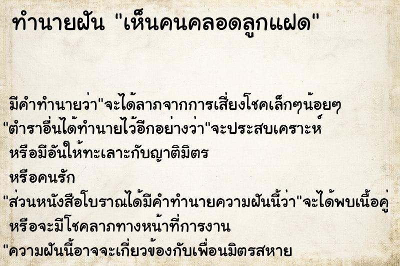 คำทำนายฝันนั้นมีหลายแบบ เพราะเรื่องของการพยากรณ์ฝันเป็นศาสตร์ความเชื่อที่แตกต่างกันตามตำรา ไม่มีหนังสือหรือตำราพยากรณ์ฝันใดจะมีความแม่นยำได้ 100% ไม่มีใครสามารถชี้ชัดว่าอันไหนถูกผิด โปรดใช้วิจารณญานตามความชอบหรือความเชื่อของตัวท่านเอง