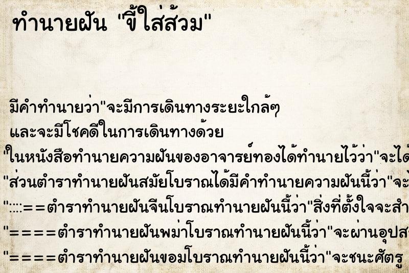 เปิดประตูสู่โลกแห่งความลึกลับกับ เว็บไซต์ทำนายฝัน ตำราทำนายฝันโบราณ แหล่งรวมคำทำนายสุดแม่นยำจากตำราดั้งเดิมที่สืบทอดมาหลายร้อยปี ค้นหาความหมายของความฝันได้ง่าย เพียงพิมพ์สิ่งที่คุณฝันเมื่อคืน เช่น ฝันเห็นงู ฝันว่าฟันหลุด ฝันเห็นพระ ฝันว่าท้อง หรือฝันว่าตาย ระบบจะวิเคราะห์คำทำนายตามตำราโบราณ พร้อม เลขเด็ดจากความฝัน เพื่อเสริมโชคลาภและดวงชะตาในชีวิตจริง ทุกความฝันมีความหมายที่ซ่อนอยู่ เว็บไซต์ของเรารวบรวม คำทำนายฝันแบบไทยแท้ พร้อมอธิบายความหมายในเชิงจิตวิทยาและความเชื่อโบราณ เพื่อให้คุณเข้าใจทั้งด้านจิตใจและพลังลึกลับจากจักรวาล ไม่ว่าจะฝันดีหรือฝันร้าย ที่นี่มีคำตอบครบทุกหมวดหมู่ ตำราทำนายฝันโบราณฉบับแท้ ที่ได้รับความนิยมมากที่สุดในประเทศไทย พร้อมอัปเดตคำทำนายใหม่ทุกวัน รวมคำทำนายกว่า 10,000 รายการ และระบบค้นหาความฝันอัตโนมัติ รวดเร็ว ใช้งานง่าย รองรับทั้งมือถือและคอมพิวเตอร์ มาร่วมเปิดรหัสความฝันของคุณได้แล้ววันนี้กับเรา เว็บไซต์ทำนายฝันที่คนไทยไว้ใจมากที่สุด แปลความฝันแม่นยำ เหมาะสำหรับคนรักโชคลาภ เสริมดวง เสี่ยงโชค หรือผู้ที่อยากรู้ว่าฝันเมื่อคืนนี้บอกอะไรกับชีวิตคุณ ✨ ทำนายฝันฟรี คลิกเดียวรู้ความหมาย พร้อมเลขเด็ดเสริมโชคทุกวัน