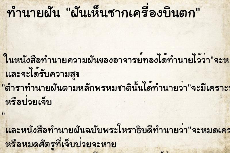 คำทำนายฝันนั้นมีหลายแบบ เพราะเรื่องของการพยากรณ์ฝันเป็นศาสตร์ความเชื่อที่แตกต่างกันตามตำรา ไม่มีหนังสือหรือตำราพยากรณ์ฝันใดจะมีความแม่นยำได้ 100% ไม่มีใครสามารถชี้ชัดว่าอันไหนถูกผิด โปรดใช้วิจารณญานตามความชอบหรือความเชื่อของตัวท่านเอง