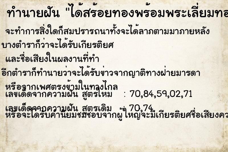 🌟 ทำนายฝันจีนโบราณ : "จะมีเกณฑ์ได้เดินทางไปในที่ที่ดี