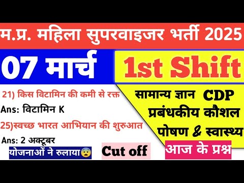 87 , 07 MARCH 1st SHIFT MP MAHILA SUPERVISOR EXAM ANALYSIS|nutrition MANAGEMENT CDP gk today Exam Review ( ▶️▶️▶️ 🔎 ::: Play ::: ) 🌟