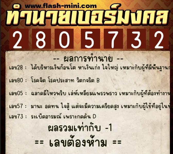 วิเคราะห์เบอร์ 0XX-2805732