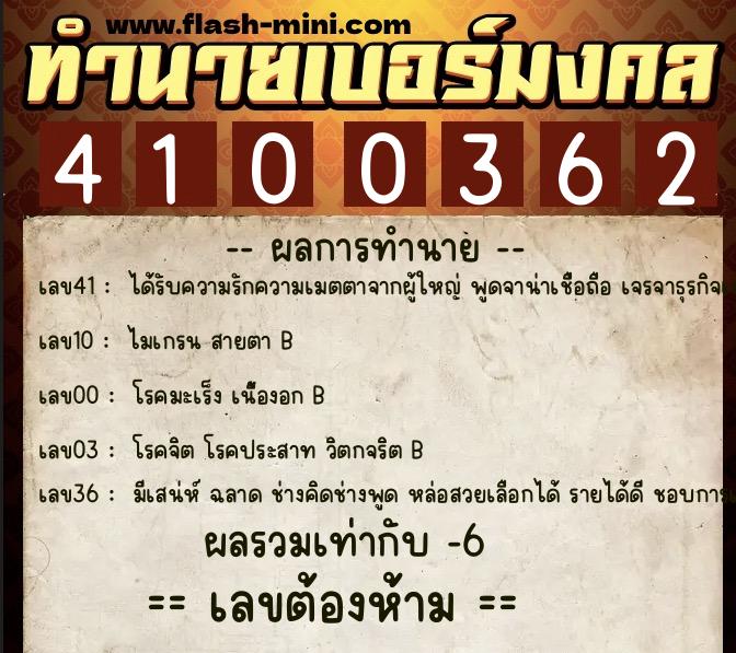 วิเคราะห์เบอร์มงคล หมายเลข 0XX-4100362 เบอร์นี้คือ เลขต้องห้าม