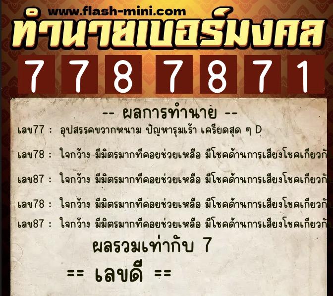 วิเคราะห์เบอร์มงคล หมายเลข 0XX-7787871 เบอร์นี้คือ เลขดี
