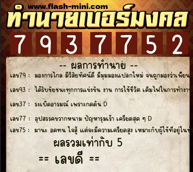 วิเคราะห์เบอร์มงคล หมายเลข 0XX-7937752 เบอร์นี้คือ เลขดี