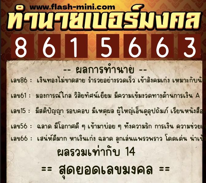 วิเคราะห์เบอร์มงคล หมายเลข 0XX-8615663 เบอร์นี้คือ สุดยอดเลขมงคล